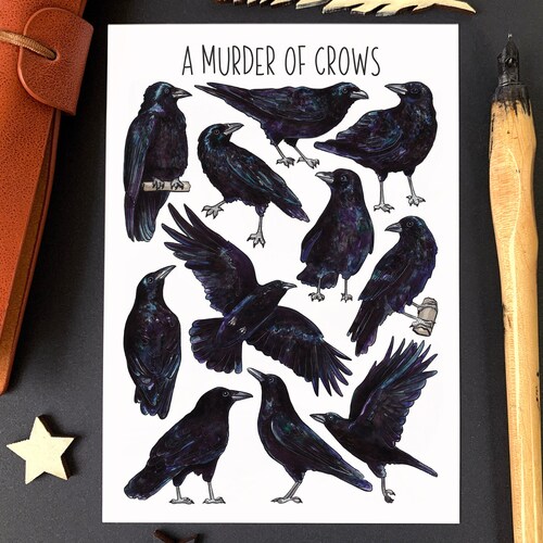Crows Watercolour Postcard Murder Of Crows Postcard Notelets Etsy
